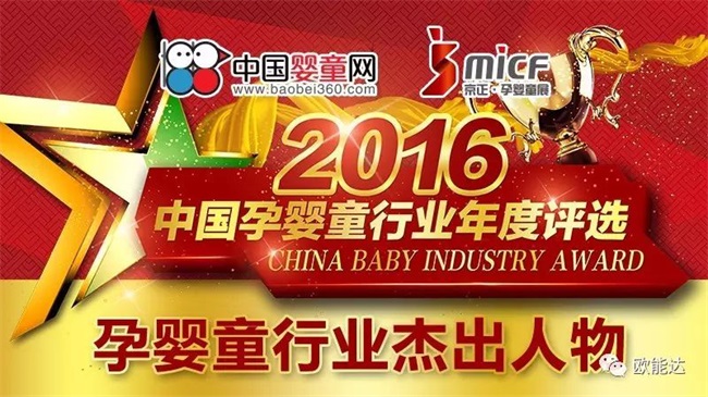 2017年3月24日,2016中國孕嬰童行業(yè)年度評選頒獎晚會在北京中國大飯店隆重舉行,現(xiàn)場揭曉了中國孕嬰童行業(yè)杰出人物。行業(yè)杰出人物獎共有31位人物參與角逐,并由950多萬人次大眾投票和200位專家評審投票產(chǎn)生。