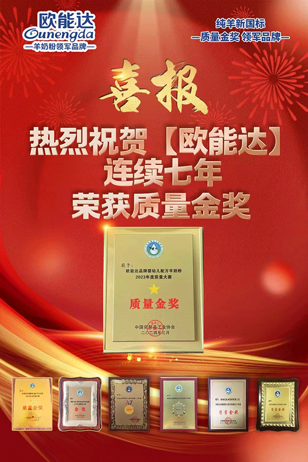 熱烈祝賀【歐能達】品牌榮獲2023年度全國主流嬰幼兒奶粉品牌質量大賽“質量金獎”!