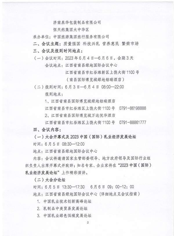 關(guān)于召開中國乳制品工業(yè)協(xié)會第二十九次年會暨2023年中國(國際)乳業(yè)技術(shù)博覽會的預(yù)備通知