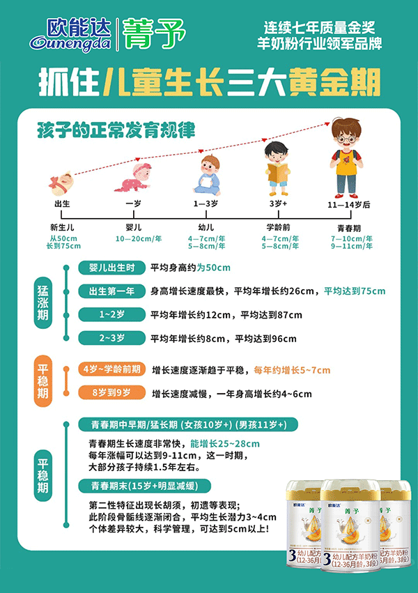 3? 青春期(10-18歲):孩子迎來第二次生長發(fā)育高峰,不僅身高猛增,性器官也開始發(fā)育。此時要保證充足的睡眠和均衡的飲食,助力孩子順利度過青春期。???? ??家長們,不要錯過這三大黃金期,讓我們一起守護(hù)孩子的健康成長吧!??#歐能達(dá) 好羊奶